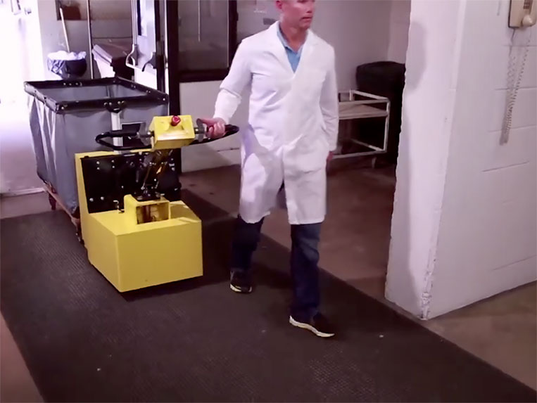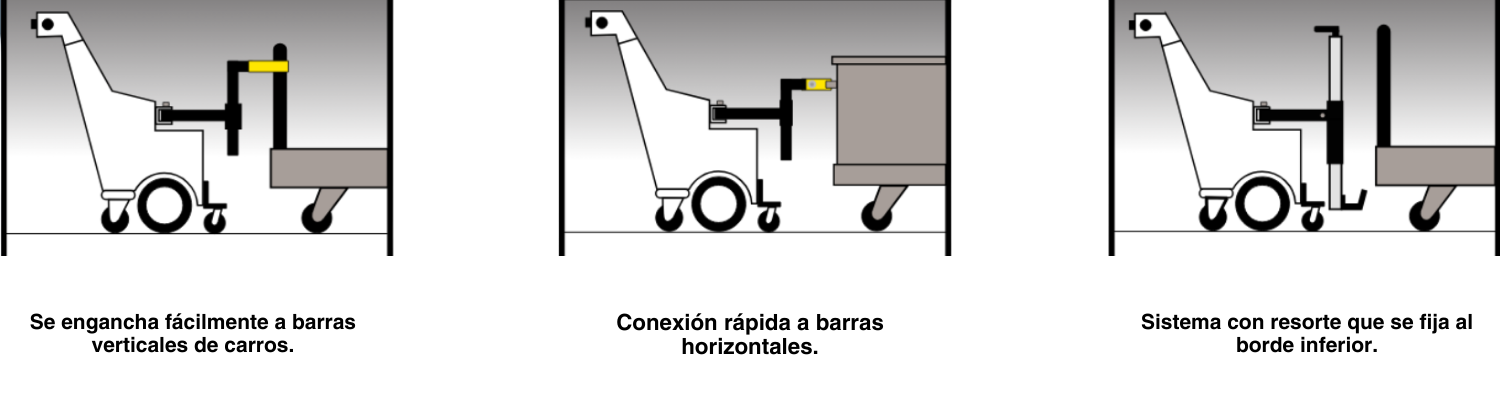Facilita el movimiento de carros de hasta 450 kg sin esfuerzo físico, reduciendo el riesgo de lesiones y mejorando la eficiencia del personal. Se conecta rápidamente a cualquier carro sin necesidad de modificaciones, permitiendo maniobrar con precisión en pasillos estrechos y áreas congestionadas.