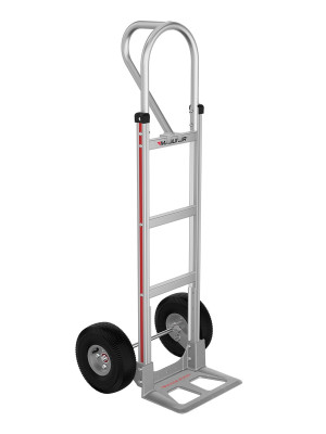 DIABLITO PLEGABLE Diablito de dos ruedas plegable con cuadro curveado, y agarradera en forma de U, Plataforma de 14 X 7-1/2 de aluminio con ruedas de 8" de hule solido SKU - …