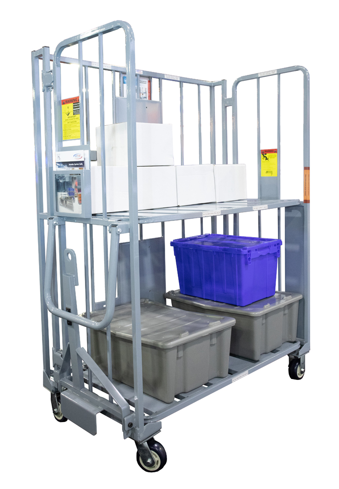 Las manijas de alta gama mantienen los contenedores y la mercancía en su lugar. El tirador hace que los carros sean fáciles de maniobrar.
